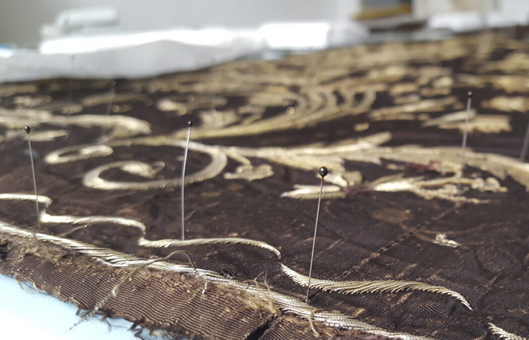 - Esta misma apreciación se pudo documentar en los restos de forro original que se hallaron en el interior de las prendas, una vez que se inició el desmontaje de las mismas, de cara a la restauración (Fig. 3).
