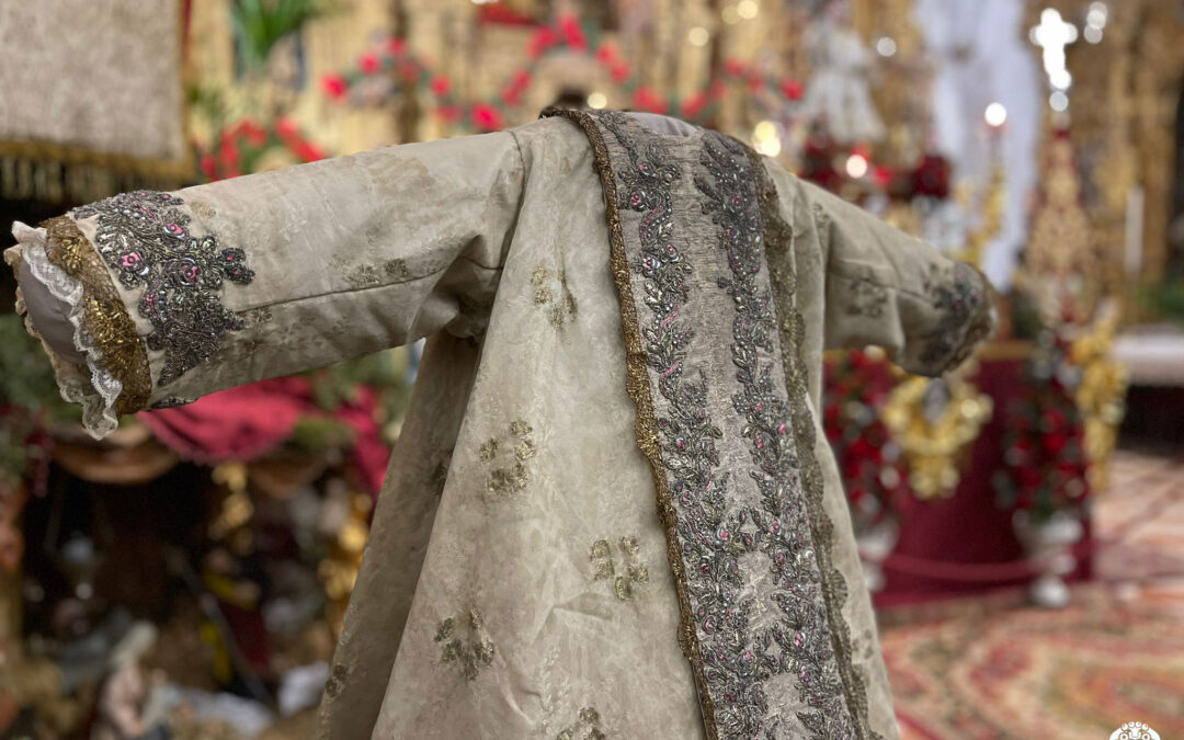 El pasado mes de diciembre de 2022 se presentó públicamente la Túnica de ‘los Talcos’ del Dulce Nombre de Jesús de Estepa, Sevilla, tras la restauración integral que hemos realizado en nuestro estudio. Una intervención compleja dado el estado en que se encontraba la pieza, en desuso desde hace casi un siglo, en la que había que compatibilizar la conservación íntegra con la funcionalidad puntual a la que se somete esta pieza textil.