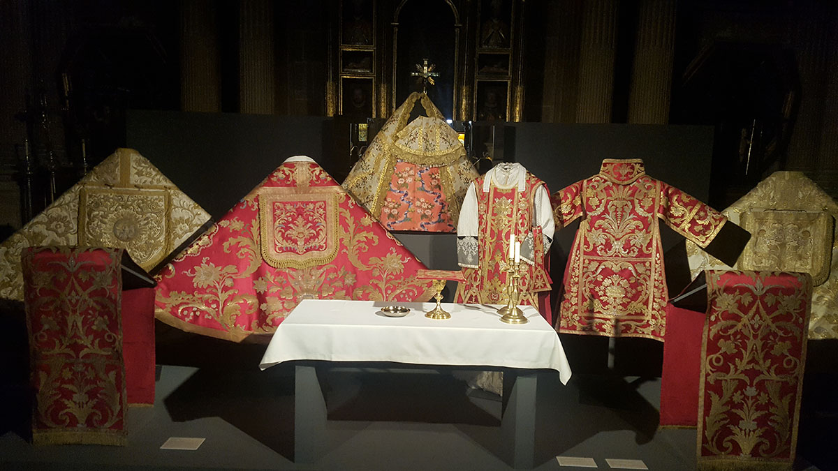 MONTAJE EXPOSITIVO “AL HILO DE LA SEDA. Tejidos de la Diócesis de Jaén del siglo XVI al XVIII”. Catedral de la Asunción, Jaén. En colaboración con Fundación Caja Rural de Jaén.
