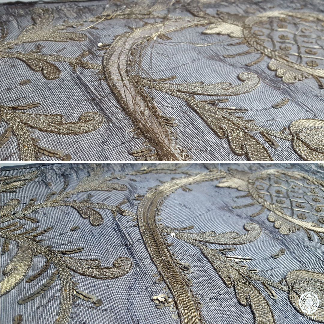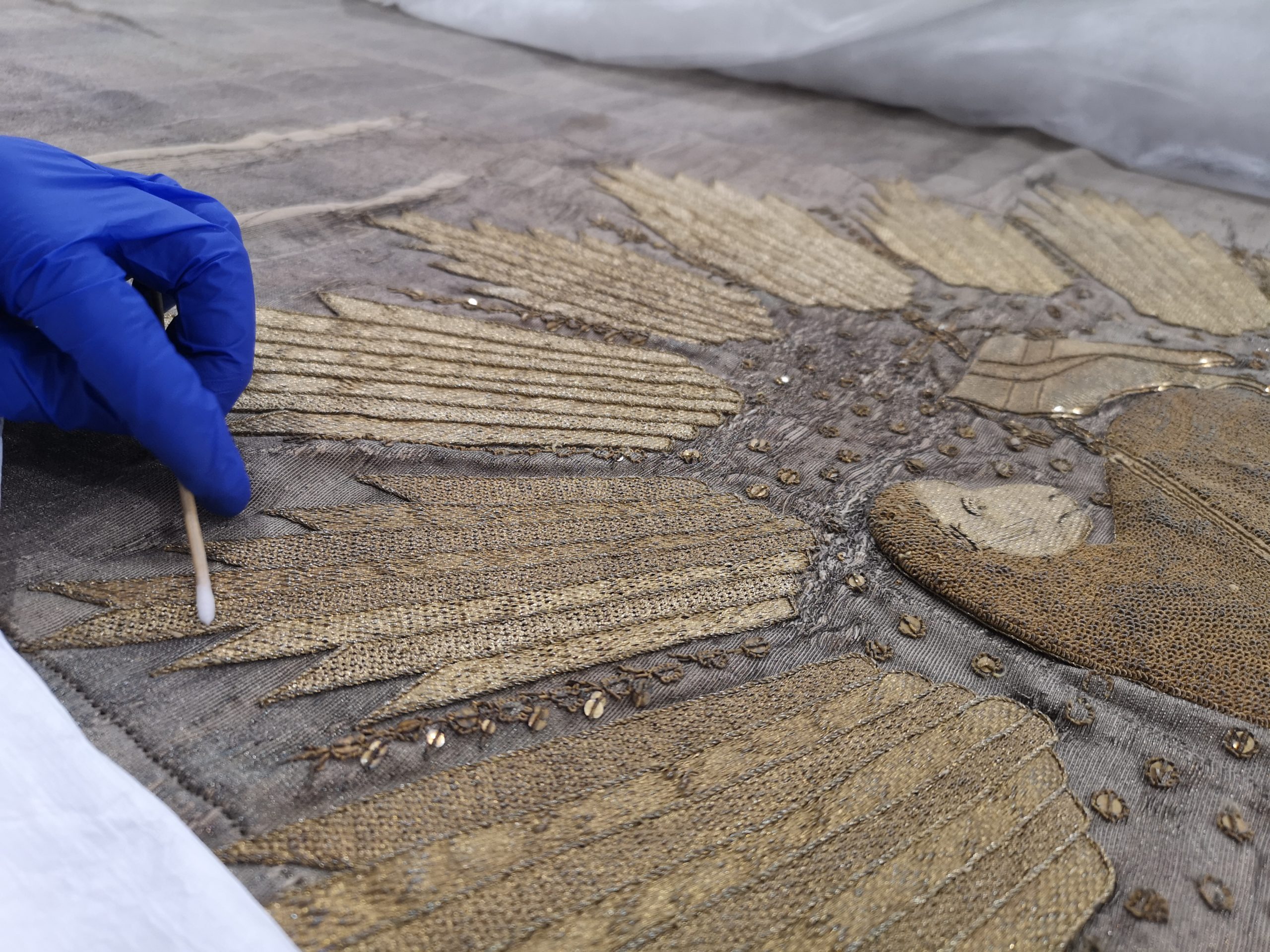 • Limpieza físico-química de la ornamentación bordada y flecos.